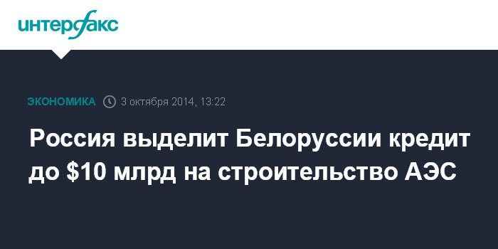 Россия выделит Белоруссии кредит до $10 млрд на строительство АЭС
