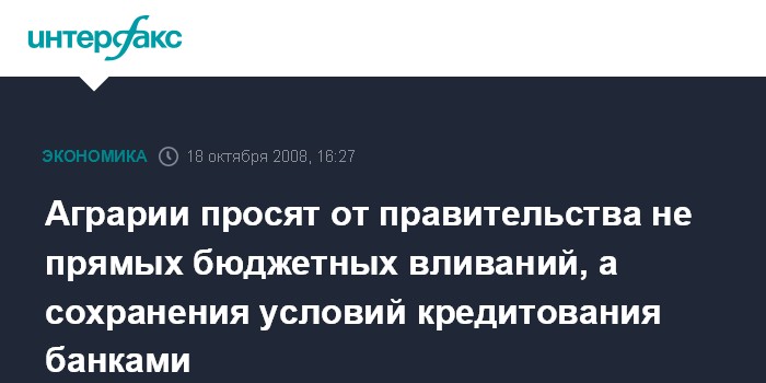 Аграрии просят от правительства не прямых бюджетных вливаний, а сохранения условий кредитования банками