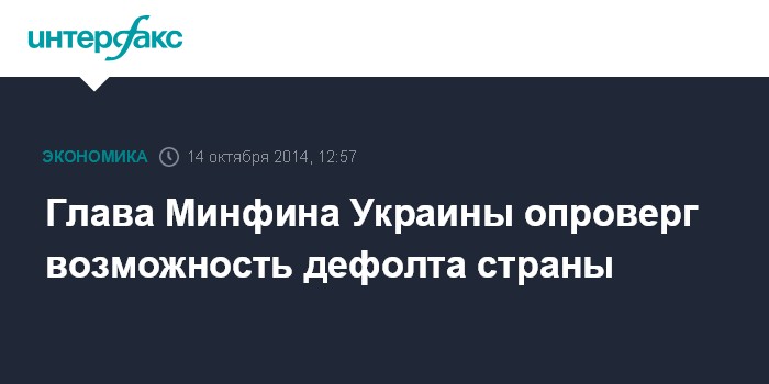Москва. 14 октября. INTERFAX.RU - Министр финансов Украины Александр Шлапак заявил, что в стране "никакого дефолта не будет". Так он прокомментировал оценку агентства Moody's, обнародованную несколько дней назад, о возможном дефолте Украины в связи с прогнозируемым предъявлением Россией к досрочному погашению еврооблигаций на $3 млрд.