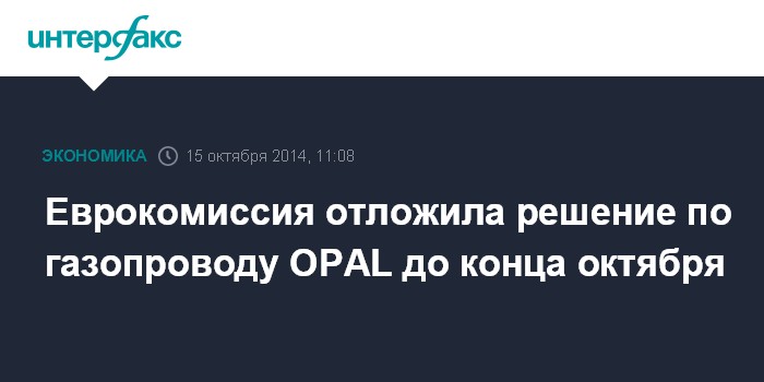 Ранее Еврокомиссия сообщала, что решение по использованию газопровода OPAL должно быть принято до середины октября. ЕК уже несколько раз откладывала принятие решение разрешения 100-процентного использования мощностей газопровода OPAL - продолжения газопровода "Северный поток". Свое решение ЕК объясняла также необходимостью прояснения некоторых технических аспектов.