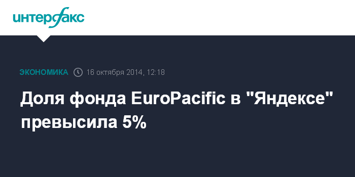 Доля фонда EuroPacific в "Яндексе" превысила 5%