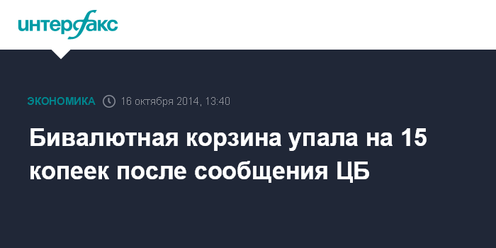 Бивалютная корзина упала на 15 копеек после сообщения ЦБ