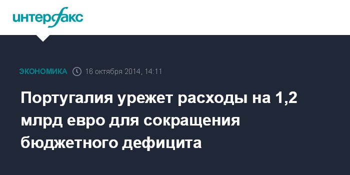 Москва. 16 октября. INTERFAX.RU - Правительство Португалии планирует реализовать меры сокращения расходов общим объемом 1,2 млрд евро, чтобы снизить дефицит бюджета в 2015 году, сообщает агентство Bloomberg.