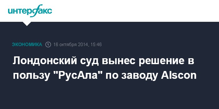 Лондонский суд вынес решение в пользу "РусАла" по заводу Alscon
