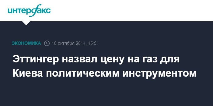 "Это показывает, что цена на газ, его рынок стали политическим инструментом. Особенно цена", - сказал Эттингер.