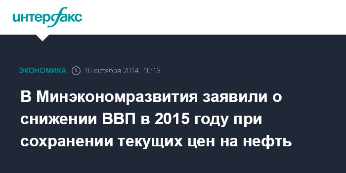 В Минэкономразвития заявили о снижении ВВП в 2015 году при сохранении текущих цен на нефть