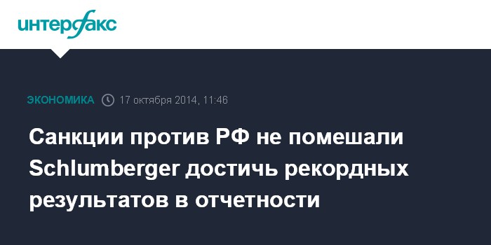Ранее Schlumberger сообщала, что ждет в третьем квартале снижения прибыли на 3 цента в расчете на акцию из-за санкций США и Европейского союза в отношении России. Компания отмечала, что санкции "накладывают некоторые ограничения" на работу и оборудование в России, снижают эффективность и повышают издержки. В сентябре, после того, как ЕС и США расширили список санкций против России, агентство Bloomberg сообщило о том, что Schlumberger отзывает из России американский и европейский персонал.