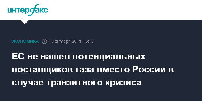 ЕС не нашел потенциальных поставщиков газа вместо России в случае транзитного кризиса
