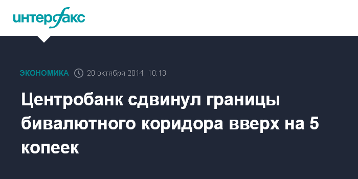 До октября Банк России последний раз сдвигал границы бивалютного коридора в начале мая 2014 года.