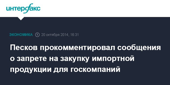 Песков прокомментировал сообщения о запрете на закупку импортной продукции для госкомпаний