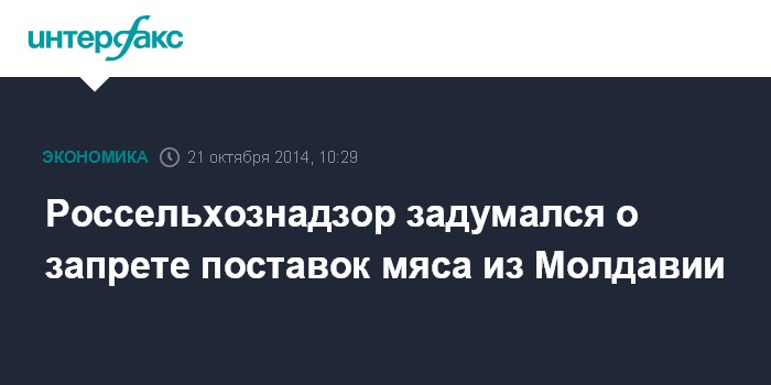 Москва. 21 октября. INTERFAX.RU - Россельхознадзор может запретить поставки всех видов мяса и мясной продукции из Молдавии. Скорее всего, это произойдет 22 октября.