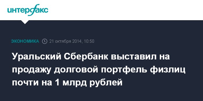 Москва. 21 октября. INTERFAX.RU - Уральский банк Сбербанка России объявил о продаже портфеля проблемных кредитов физических лиц, общий объем которого составляет 965,9 млн рублей. Портфель может быть продан целиком или по частям.