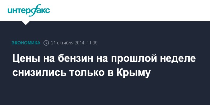 Москва. 21 октября. INTERFAX.RU - Крымский федеральный округ стал единственным регионом в России, который на прошлой неделе (12-19 октября) снизил розничные цены на бензин, свидетельствуют данные ЦДУ ТЭК.