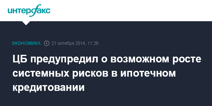 Москва. 21 октября. INTERFAX.RU - Системные риски в ипотечном кредитовании носят ограниченный характер, но могут вырасти при сохранении смягчения требований к заемщикам, говорится в "Обзоре финансовой стабильности", размещенном на сайте ЦБ РФ.