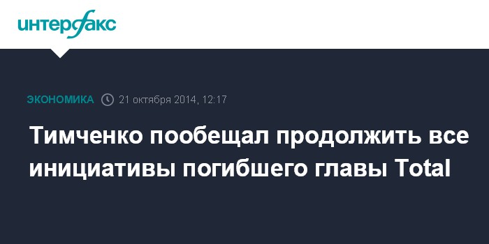 Тимченко пообещал продолжить все инициативы погибшего главы Total