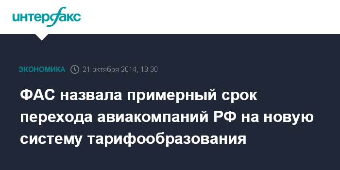ФАС назвала примерный срок перехода авиакомпаний РФ на новую систему тарифообразования