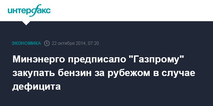 Минэнерго предписало "Газпрому" закупать бензин за рубежом в случае дефицита