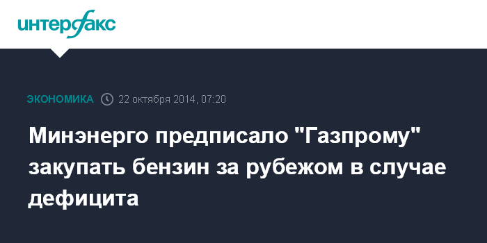 Пока речь не идет от серьезных мерах, однако "Газпрому" предписано закупать 20 тысяч тонн бензина в месяц, если возникнет такая необходимость. Соответствующее письмо министерство отправило в госмонополию.