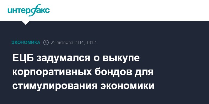 Москва. 22 октября. INTERFAX.RU - Европейский центральный банк рассматривает возможность выкупа корпоративных облигаций как вариант, к которому можно прибегнуть, если будут необходимы более агрессивные меры для вливания денежных средств в ослабленную экономику еврозоны, пишет газета The Wall Street Journal со ссылкой на информированные источники.