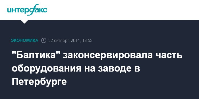 Москва. 22 октября. INTERFAX.RU - Пивоваренная компания "Балтика" (входит в международную группу Carlsberg) законсервировала часть оборудования для производства пива на заводе в Петербурге, сообщил "Интерфаксу" директор завода "Балтика-Санкт-Петербург" Юрий Чентырев.