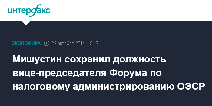 Мишустин сохранил должность вице-председателя Форума по налоговому администрированию ОЭСР