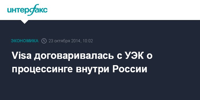 Москва. 23 октября. INTERFAX.RU - Международная платежная система Visa договаривалась со Сбербанком и подконтрольной ему компанией "Универсальная электронная карта" (УЭК) относительно перевода обработки внутрироссийских транзакций в УЭК, пишет газета "Ведомости" со ссылкой на источники.