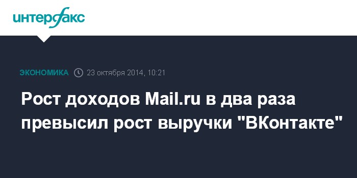 Рост доходов Mail.ru в два раза превысил рост выручки "ВКонтакте"