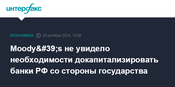 Moody's не увидело необходимости докапитализировать банки РФ со стороны государства