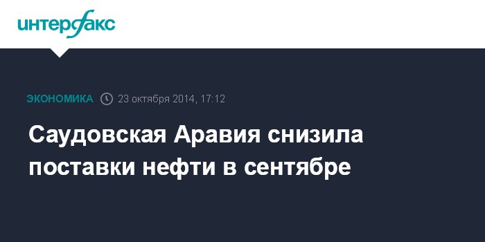 Москва. 23 октября. INTERFAX.RU - Саудовская Аравия, крупнейший мировой экспортер нефти, снизила поставки этого вида сырья на рынок в сентябре 2014 года, заявил агентству Bloomberg источник, знакомый с нефтяной политикой страны, на условиях анонимности.