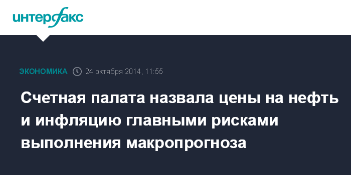 Счетная палата назвала цены на нефть и инфляцию главными рисками выполнения макропрогноза