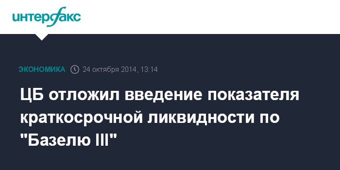До сих пор планировалось, что норматив краткосрочной ликвидности (LCR) по "Базелю III" для крупнейших банков вступит в силу с 1 января 2015 года. О переносе этого срока банки неоднократно просили ЦБ.