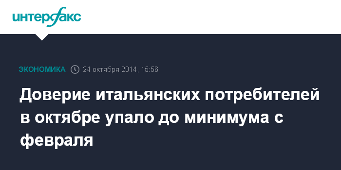 Москва. 24 октября. INTERFAX.RU - Индекс потребительского доверия в Италии в октябре снизился по сравнению с предыдущим месяцем до минимального значения с февраля текущего года, пишет MarketWatch.