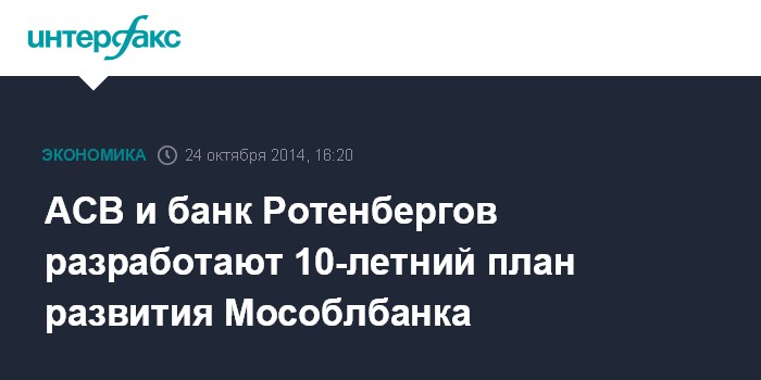 АСВ и банк Ротенбергов разработают 10-летний план развития Мособлбанка