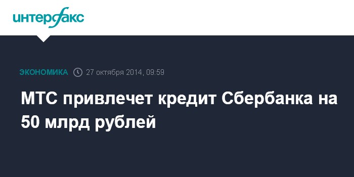 МТС привлечет кредит Сбербанка на 50 млрд рублей