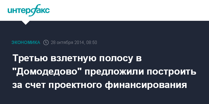 Москва. 28 октября. INTERFAX.RU - Третью взлетную полосу в аэропорту "Домодедово" могут построить за счет проектного финансирования. Такое предложение уже поступило руководству аэропорта, пишет во вторник газета "Ведомости" со ссылкой на федерального чиновника и представителя "Домодедово".