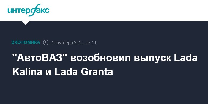Москва. 28 октября. INTERFAX.RU - "АвтоВАЗ" возобновил производство автомобилей Lada Kalina и Lada Granta, сообщила компания.