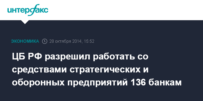 ЦБ РФ разрешил работать со средствами стратегических и оборонных предприятий 136 банкам
