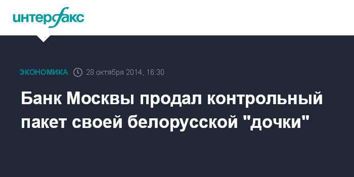 Летом 2014 года совет директоров Банка Москвы одобрил продажу 99,75% акций своей белорусской "дочки". Пресс-служба банка сообщала, что сделка планируется "в ближайшее время" и проходит "в рамках оптимизации присутствия группы ВТБ в Белоруссии". "Стратегия Банка Москвы предусматривает работу на территории РФ, развивать дочерние банки за пределами страны мы не планируем", - отмечали в пресс-службе.