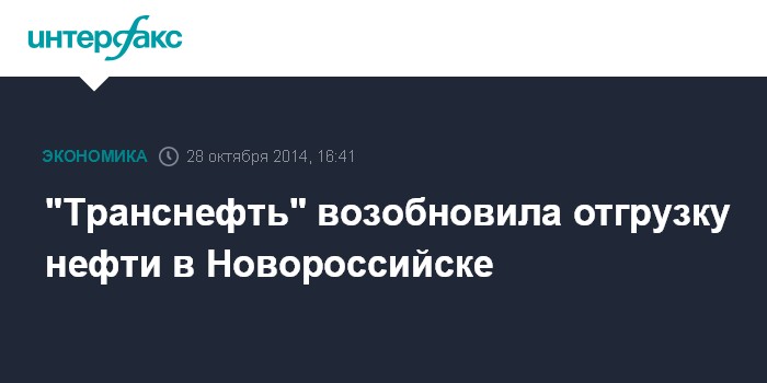 Москва. 28 октября. INTERFAX.RU - "Транснефть" возобновила отгрузку нефти в порту Новороссийск после улучшения погодных условий, сообщил Интерфаксу советник президента компании Игорь Демин.