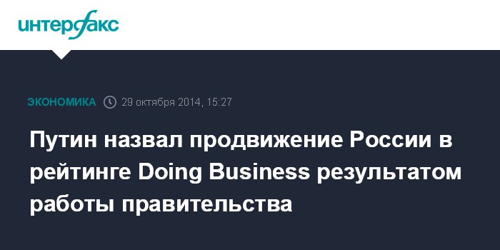 Москва. 29 октября. INTERFAX.RU - Путин считает продвижение России в рейтинге Doing Business конкретным результатом работы правительства