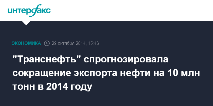 "Транснефть" спрогнозировала сокращение экспорта нефти на 10 млн тонн в 2014 году