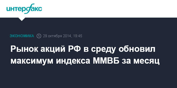 Рынок акций РФ в среду обновил максимум индекса ММВБ за месяц