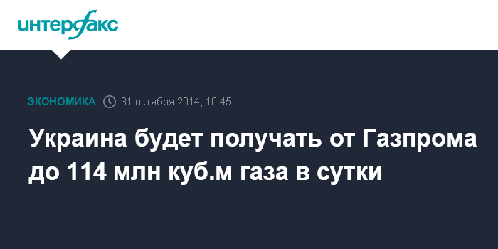 Москва. 31 октября. INTERFAX.RU - "Нафтогаз Украины" будет получать от "Газпрома" в рамках зимнего пакета до 114 млн куб.м газа в сутки, сообщил в интервью "России 24" глава российской компании Алексей Миллер.