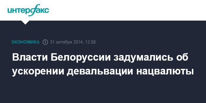 Нацбанк Белоруссии в июле прогнозировал, что к концу 2014 года курс нацвалюты может составить 10,7-10,8 тыс. бел. рублей/$1. В мае президент страны Александр Лукашенко заявлял об отсутствии планов одномоментной девальвации белорусского рубля и о наличии необходимых ресурсов для поддержания стабильности курса нацвалюты.