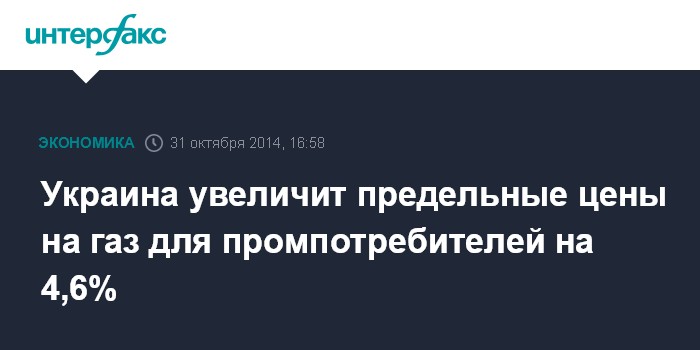 Москва. 31 октября. INTERFAX.RU - Национальная комиссия, осуществляющая регулирование в сфере энергетики и коммунальных услуг Украины, на заседании в пятницу приняла решение повысить предельный тариф на газ для промышленных потребителей и бюджетных учреждений на 4,6% - до 5,1 тыс. гривен с 4,874 тыс. гривен за 1 тыс. кубометров.
