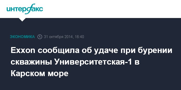 Москва. 31 октября. INTERFAX.RU - Американская ExxonMobil впервые официально озвучила результаты бурения на Восточно-Приновоземельском участке в Карском море совместно с "Роснефтью" .