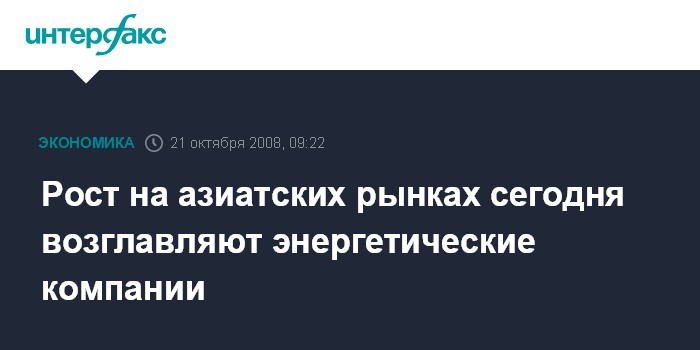 Рост на азиатских рынках сегодня возглавляют энергетические компании