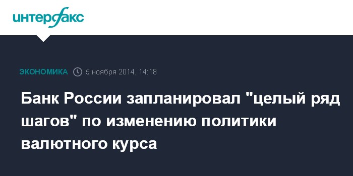 Москва. 5 ноября. INTERFAX.RU - Центробанк РФ может предпринять целый ряд шагов по изменению политики валютного курса, заявила журналистам первый зампред ЦБ Ксения Юдаева.