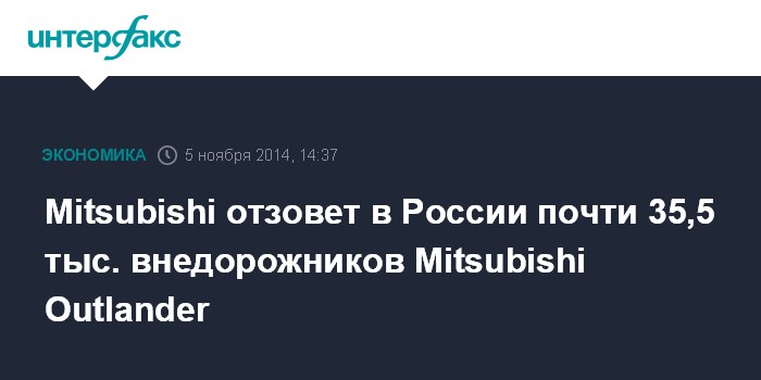 Москва. 5 ноября. INTERFAX.RU - Российское подразделение японского автомобилестроительного концерна Mitsubishi ООО "ММС Рус" объявило об отзыве 35,484 тыс. автомобилей Mitsubishi Outlander в России, говорится в сообщении Росстандарта.