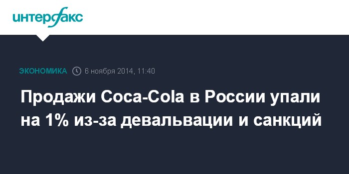 Ранее Coca-Cola Co. сообщала о падении объема продаж в России, Белоруссии и на Украине на 3% в III квартале.
